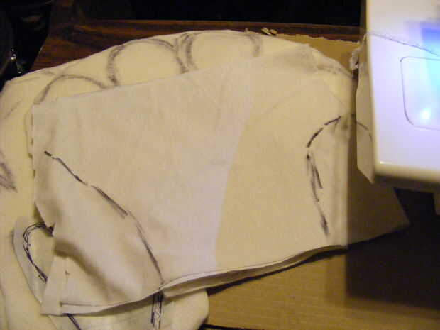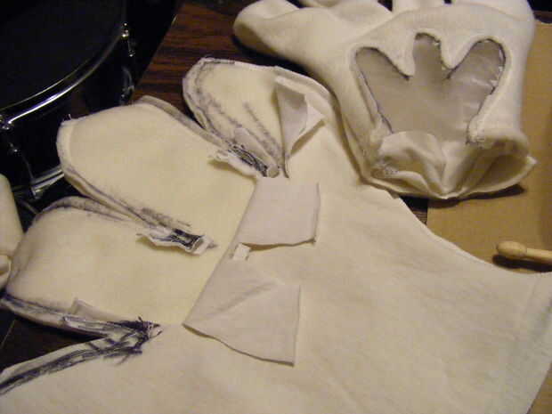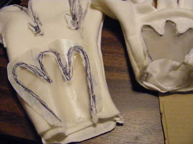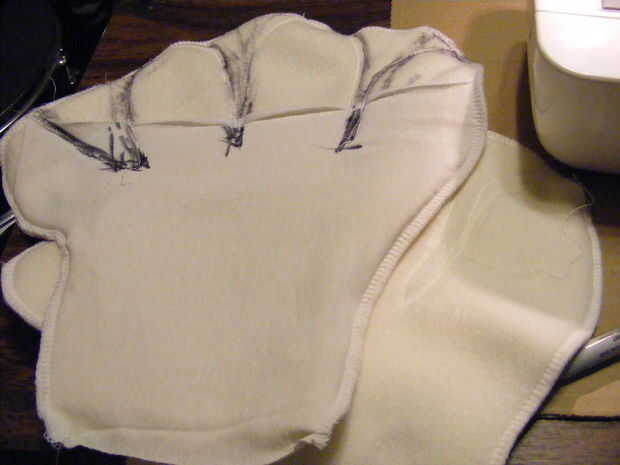 Tuve que volver con una máquina de coser regular para hacer las costuras alrededor de los dedos y el pulgar.