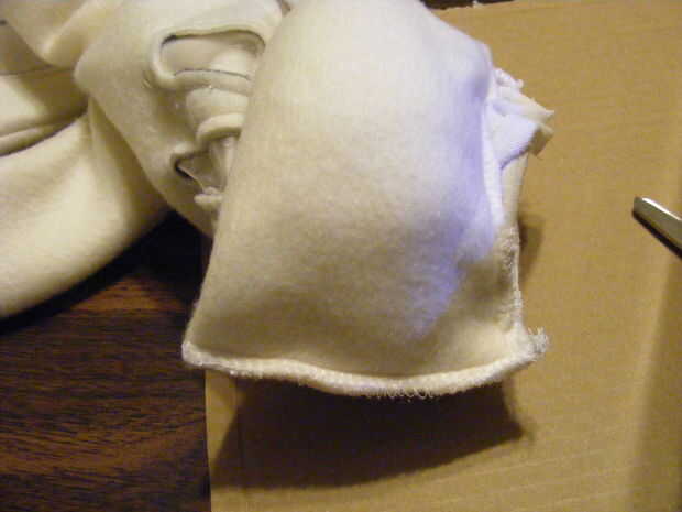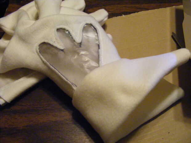 Coloque en la parte exterior del guante y a coser o serge alrededor de la abertura del guante.