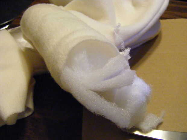 Doblar a lo largo para comenzar formando un tubo que se unirá a la abertura del guante.