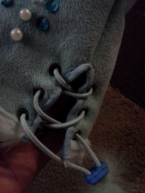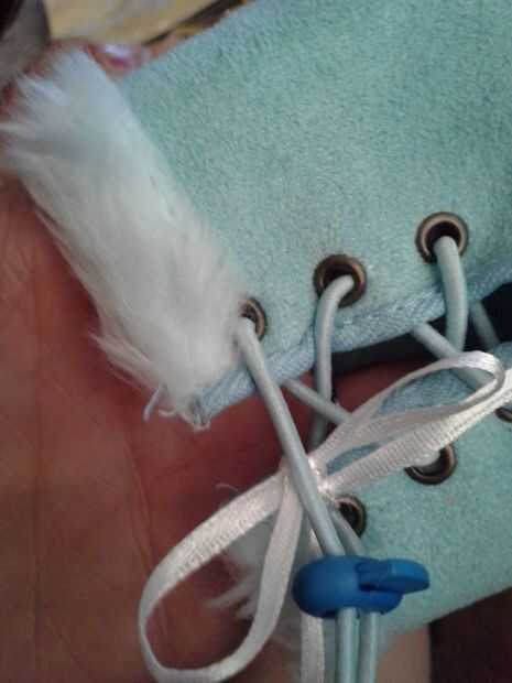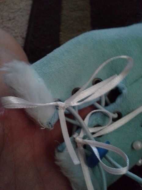 Tenía el cordón en él ya, así que todo que hizo fue tomar la cinta a través del agujero superior y nudo doble, luego hacer un lazo.  Atado el arco dos veces y me tiró duro garantizar el empate.  Ver fácil y bonito!