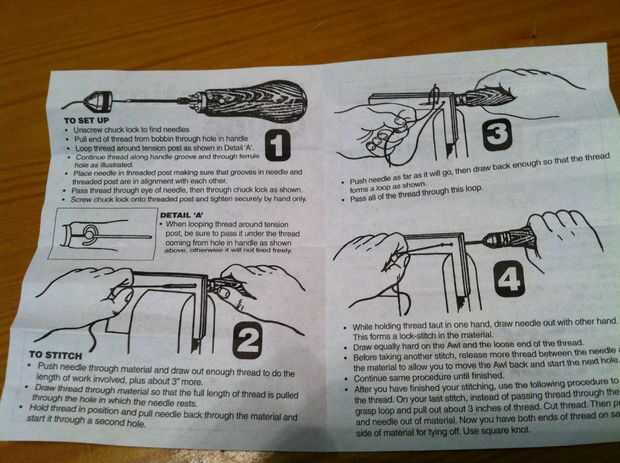 El stitcher de velocidad!  Así que para ahorrar tiempo, he incluido una foto de las instrucciones de velocidad incluye stitcher.  No tengo un vicio práctico así que lo hice puse las dos piezas de tela plana en una pieza del tablero (o un antiguo libro de cocina en este caso) y luego simplemente había perforado el stitcher de velocidad a través de las capas en el libro.