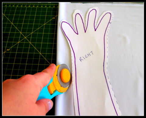 Una vez que han cortado un guante, se voltea el papel de patrón en la tela y cortar otro guante. Esto asegura que usted tiene un zurdo y un guante de mano derecha.