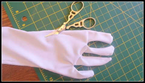 Utilice tijeras para cortar a lo largo de esa línea. Cortar solo un lado del guante (Asegúrese de que está en la palma de su guante y no la parte superior).