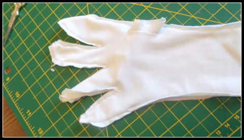 Gire a la derecha de guante hacia fuera y no comprobar que la costura del pulgar agujeros. Completa para ambos guantes.