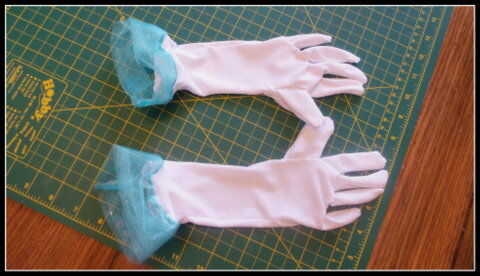 * Si usted está haciendo tipo de longitud completa (más allá de los codos) de guantes, sugiero agregar encaje de ropa interior que tiene la goma en el otro lado. Se trata de cordón especial que se puede comprar en la tienda de tela que tiene líneas de goma en la parte inferior que impide que los guantes de balanceo o desplazamiento demasiado.