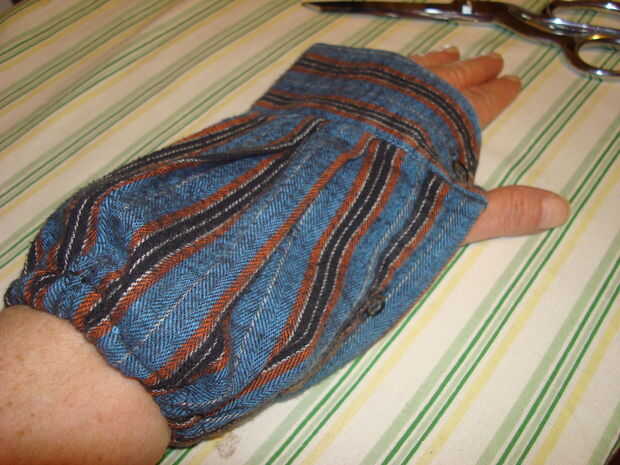 me gusta la idea de estos guantes dedo menos. Mantener las manos calientes y son un buen uso de una camisa vieja. Estas fueron hechas para Esposito, pero él no los puede ver todavía! Deseaba que tenía camisa de franela pesada de la mujer para mostrar cómo hacer moda! Voy a hacer otra después de ir al fondo de comercio.