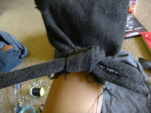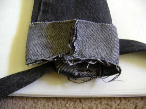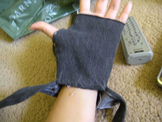 Coser la tira en el extremo inferior del guante. Asegúrese de que al centro para que tenga una cola que es igual en ambos lados.