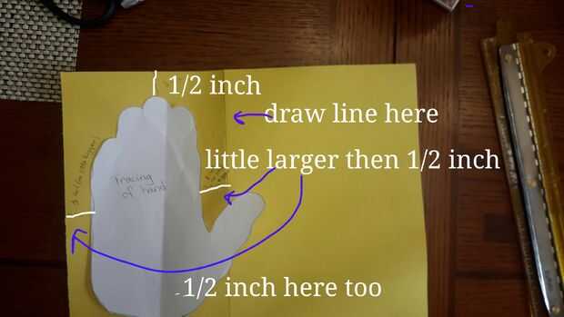 4. Marque un poco más entonces.5 pulgadas a cada lado de la mano. (nota que hice mía un poco más estrecho en comparación con el seguimiento porque estoy utilizando un trazo de la mano de mi padre para hacer un patrón para mi hermano, así que tuve que ajustar un poco)