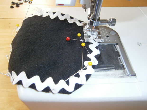Sirena perno alrededor de la pieza de la palma a la derecha, 1/4" en desde el borde hasta el centro de la sirena de vuelta el último bit el borde al principio y al final.  Estopa en su lugar.