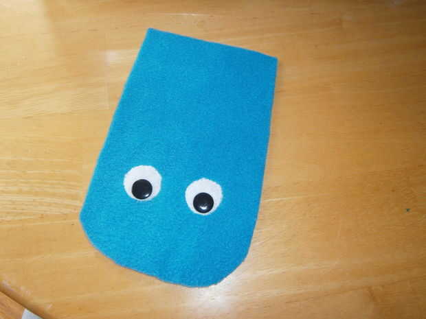 En ojos de lugar de espalda en los mitones en las marcas estrella. Usted puede appliqué, bordado si eres afortunado de tener una máquina, botones o broches de presión de plástico para los ojos. (botones no deben ser utilizados para niños menores de 3!)
