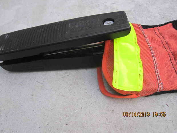 Grapa el vinilo tiras todo el camino alrededor de los puños de cada guante, frente y dorso.