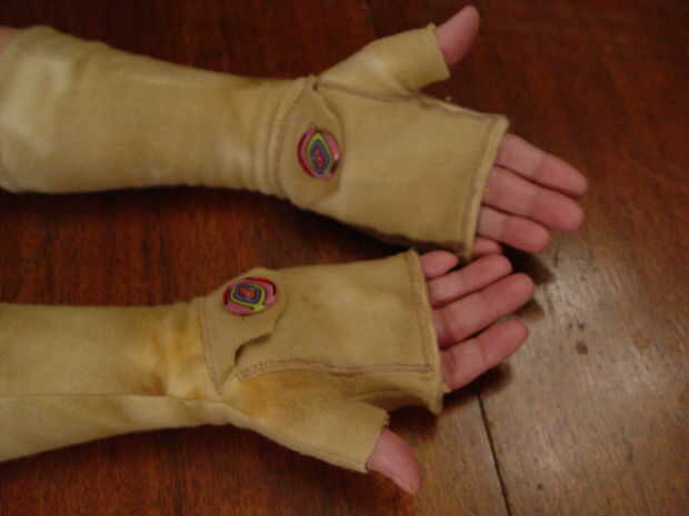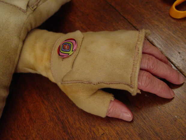 Coser un conjunto de guantes sin dedos de suéter reciclado