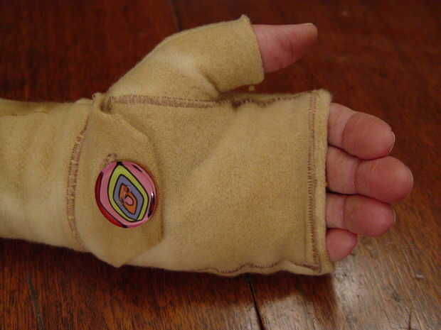 una amiga envió un par de medias de la rodilla y me preguntó uso a hacer un par de guantes sin dedos. La imagen que envió de su visión mostró un pulgar pedazo (a diferencia de un agujero del pulgar), así que me senté a averiguar cómo hacer para crear