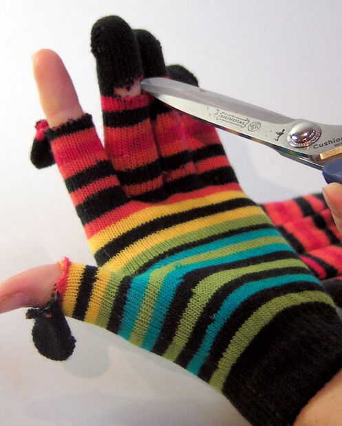 guantes sin dedos, ¿qué más tengo que decir?Paso 1: Ir a la tienda Ir a comprar guantes de invierno baratos.Paso 2: Cortar los dedosCortar los dedos con tijeras. Usted puede cortar los dedos en diferentes longitudes o el mismo.