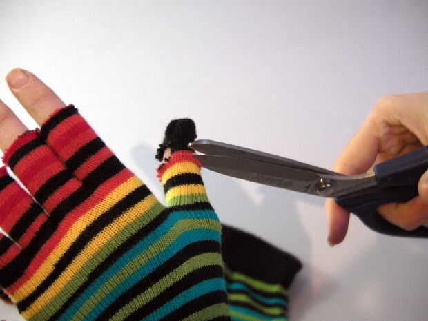Recorte los extremos según sea necesario. Si usted necesita los dedos para ser más largo, comprar guantes más y vuelva a intentarlo.