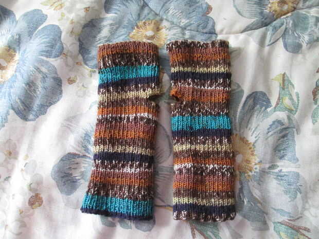 He creado este patrón de punto guantes sin dedos después de hacer muchos pares usando patrones de ahi, pero encontrar ninguno "abraza" la mano.  Agregando un abrigo pulgar y usando un elástico para la parte superior del patrón, estos realmente e