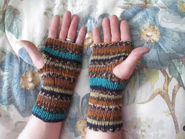 He creado este patrón de punto guantes sin dedos después de hacer muchos pares usando patrones de ahi, pero encontrar ninguno "abraza" la mano.  Agregando un abrigo pulgar y usando un elástico para la parte superior del patrón, estos realmente e
