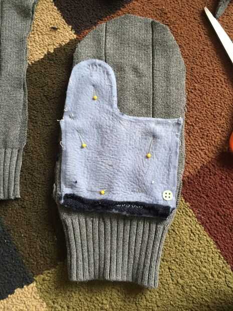 De todos modos, volver a trabajar! Después de probar diferentes formas, trazar la parte posterior de la manopla en la 1 manga parecía funcionar mejor. De esta manera, el puño de la manga podría ser el brazalete de la manopla y el manga es el ancho de la manopla. Asegúrese de poner hacia fuera para que el brazalete se contabiliza. Esta es la 1 º foto de la izquierda. Yo iba a cortar las demás partes de la manopla del cuerpo principal de la chompa hasta que tuve una idea brillante... en la foto media una de las partes posterioras de la manopla se corta. Generalmente, dos espaldas se cortan juntos y las otras piezas se cortan en dos, así. Decidí tomar 2 piezas de corte como la espalda, en 2 capas, pero (aún conmigo?) con la capa superior cortar un pulgar/frente de ella. Esto se muestra en la izquierda y la 3ª de izquierda fotos. Esto era inteligente (al menos para mí) porque la banda estaba en 1 pieza 2 piezas y por lo tanto menos abultado. Esto también permitió que parte de la mano de la manopla de pulgar abajo conectarse a de ser en forma de Jersey. Uno de la era de la manga y el otro fue tomado de una costura lateral. La manopla que fue cortada del cuerpo de la chompa con la costura lateral tendrá el brazalete ya cosido en el 1 lado. Esta es la 2ª y 3ª foto de la izquierda. La parte superior de la mano a cortar el suéter y en 2 piezas separadas. También se redujo el tiempo de coser. El truco solo fue a voltear la parte inferior para no acabar con las manoplas izquierdas derecha o 2 2.