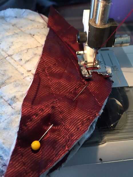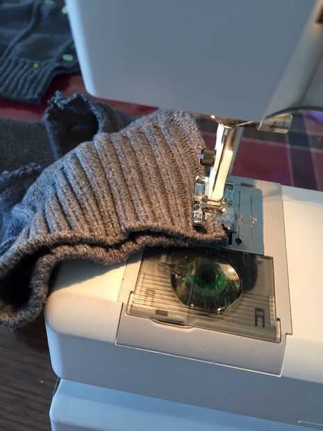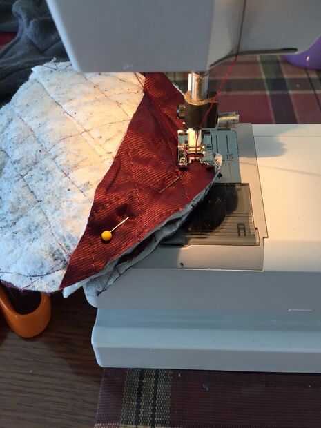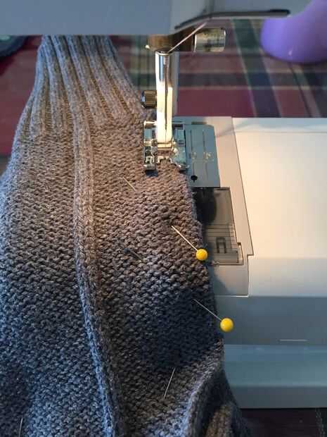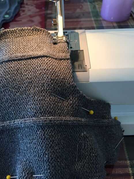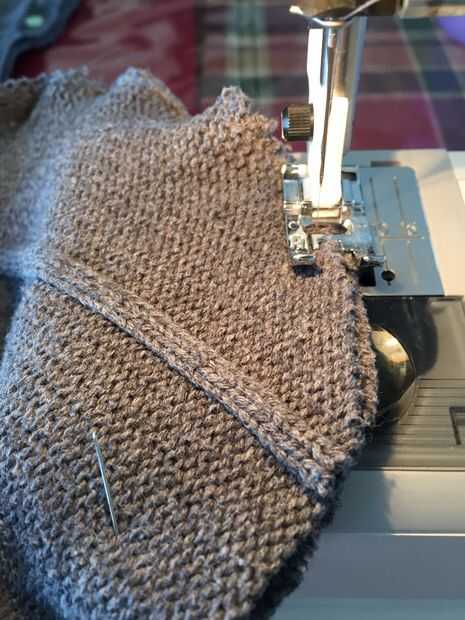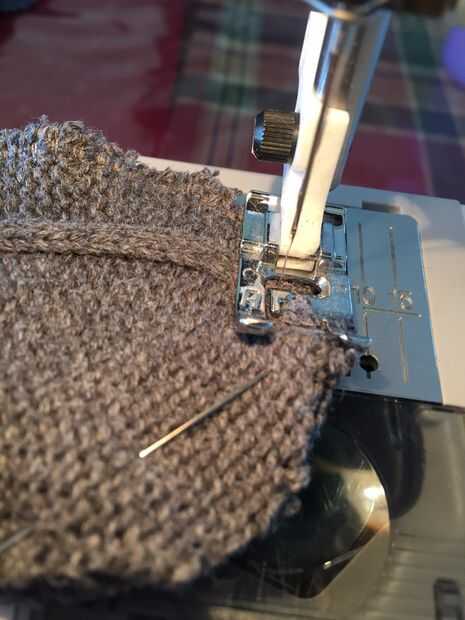 Una vez tuve 3 piezas puestas, estaba lista para hacer frente a la máquina de coser. Utilizar pequeñas costuras entre 3/8" y 1/4". Antes de que cosí, doble comprobé para asegurarse de que tenía las piezas puestas correctamente. La puntada que utilicé era un llano mediados de tamaño de puntada recta. Mi máquina también tiene una puntada para tejidos de punto pero esta puntada tiende a estirar el punto como cose y el propósito de la puntada es proporcionar dar para el proyecto. Estos mitones particularmente no necesitan una enorme cantidad de elasticidad. Hay realmente un buen poco de habitación en la manopla terminada, con o sin el revestimiento. Ver la última foto. De todos modos, usé una puntada recta de bloqueo sería más fácil más adelante por y el producto final más plano.