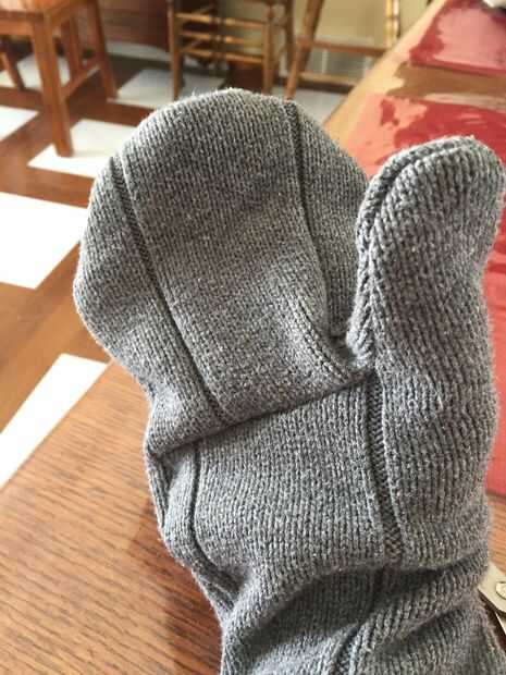 El guante terminado resultó espaciosa y cálida. El suéter era pesado y la manera en que se cortaron las piezas disminuye el volumen. El forro de Thinsulate calienta la manopla muy especialmente con las yemas del dedo reforzadas. Mi hijo no puede esperar a ir andando en trineo, por lo que puede probar con unos calentadores de la mano en los bolsillos. La 2 º foto de la derecha muestra cómo los guantes con una manopla y la guarnición se convirtió parcialmente. El bolsillo no te dejan en todo cuando te lo pones y los puños apretados que los calentadores no escurrir ni deslizarse alrededor en la manopla.