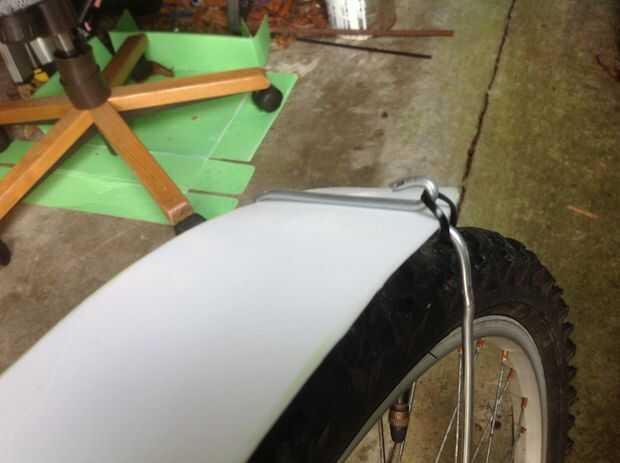 Me di cuenta de que los extremos de los guardabarros estaban queriendo rizar un poco, amenazando con golpear la rueda. Me calienta la defensa un poco con una pistola de calor y había movido los soportes más cerca al borde.