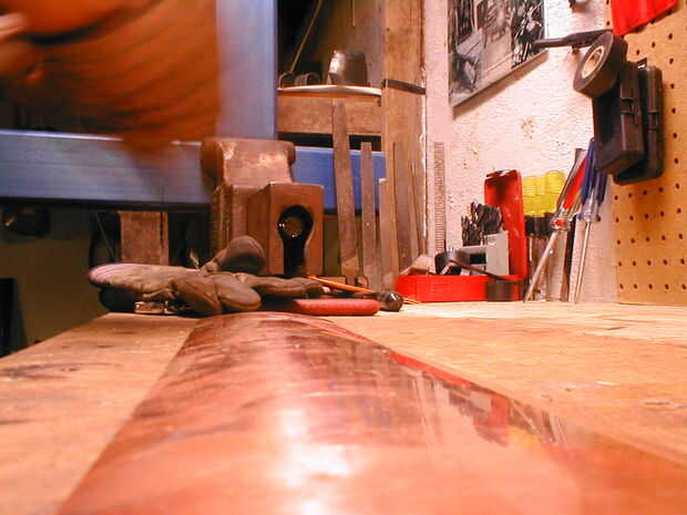 Esta es realmente la pieza para el guardabarros trasero, pero no hemos hecho eso todavía. Es sólo una pieza de calibre medio de cobre, igual a la parte delantera.