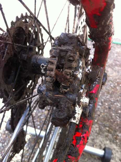 Usted puede ver el problema en las fotos - en una la pinza del freno está limpio y la otra está sucia después de un viaje a través de millas de barro. El barro reduce la potencia de frenado contaminando las almohadillas y actuando como lubricante. Es también cuando tienes frenos chillidos.