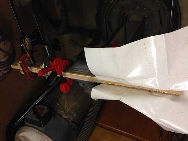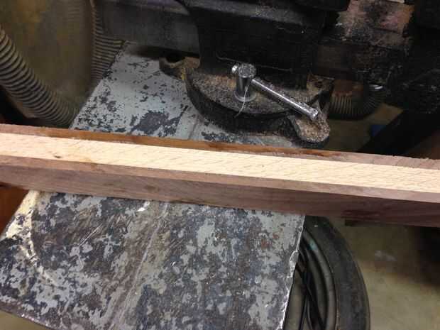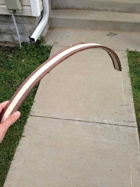 Había intercalado el pino entre dos pedazos de nuez. Asegúrese de que estas piezas tienen un ancho de al menos 1 1/2' "con el fin de obtener suficientes tiras en cada guardabarros. Creo que hice la última pieza 32" de largo, todo dependerá de cuánto tiempo desea que su defensa para envolver alrededor de su neumático. Hice este proceso dos veces, como que estaba experimentando.