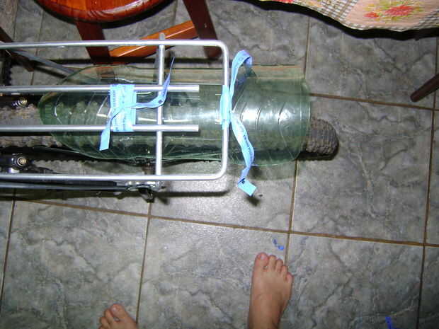 PD: usé unas tiras de nylon de propaganda azul Navidad (muy común en Brasil debido a las tradiciones religiosas (no en este caso)) en el guardabarros trasero. Los cortes que hice pasado cabido más las tiras y atado incluso mejor que el cobre del alambre del frente. Usé algunos incendios en los extremos de nylon.