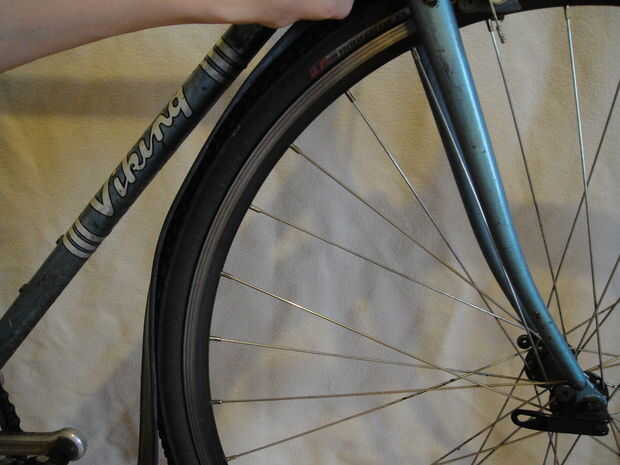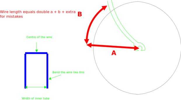 Sólo trabajaremos sobre el guardabarros delantero primero. Mida la distancia entre los ojales de la horquilla y el borde del guardabarros. Añadir esto a la longitud de la pieza de tubo interno cortes. Este doble y añadir un pie de repuesto para errores de espacios, libres, etc..