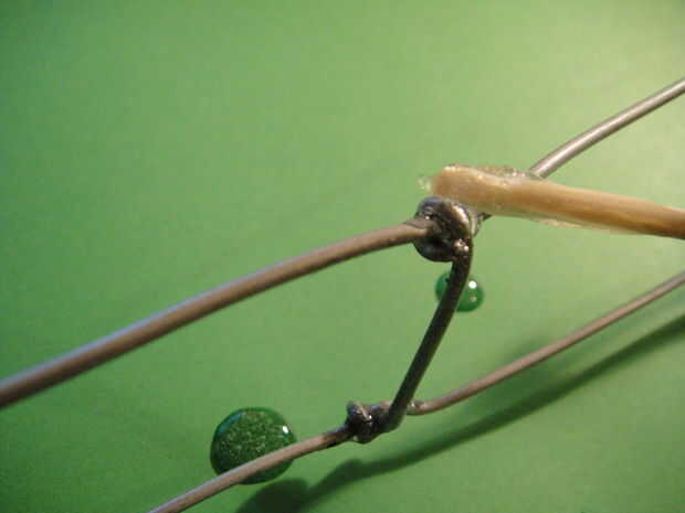 Después que están todo en su lugar, se mezclan algunos epoxy y aplicarlo a la donde se envuelven los travesaños sobre las ranuras de V. Esto les impide moverse a lo largo de los cables y se detiene cualquier traqueteo.