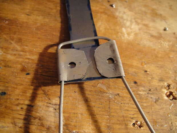 Porque no hay absolutamente ninguna separación en los frenos de mi bicicleta, tuve que ir sobre ellos. El soporte de chapa metálica hecha de la misma manera como el frente excepto que tiene un accesorio de la tira larga, por lo que puede doblar sobre los frenos y el tornillo de freno.