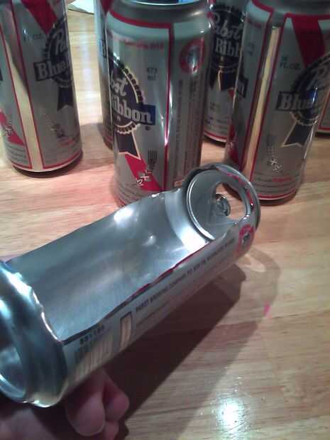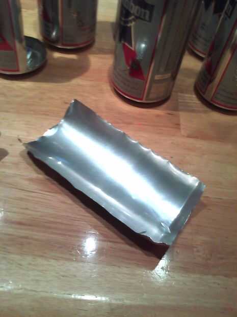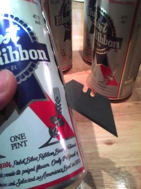 Puede perforar la lata muy fácilmente con la hoja de afeitar y utilizar un movimiento oscilante para cortar una línea recta (imagen a la hoja de afeitar como una media de unas tijeras. (o tijera?)