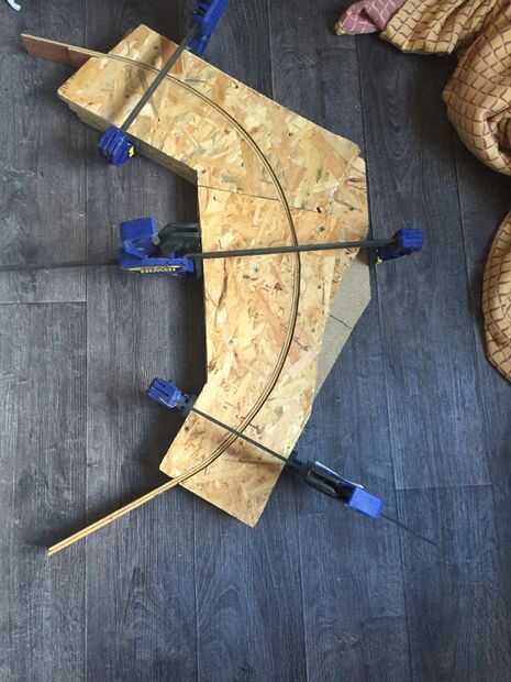 Corte la tabla montada con una sierra de calar siguiendo el radio.