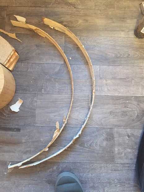 Este es un proyecto tarde fácil cómo construir su propia defensa de la bicicleta de maderaTe hace falta:-Madera fina (1mm)-Bar aluminio (mina son 4mm)-Pegamento-Pintura1. paso corta la madera en tiras maching el tamaño de los neumáticos, necesita 4 p