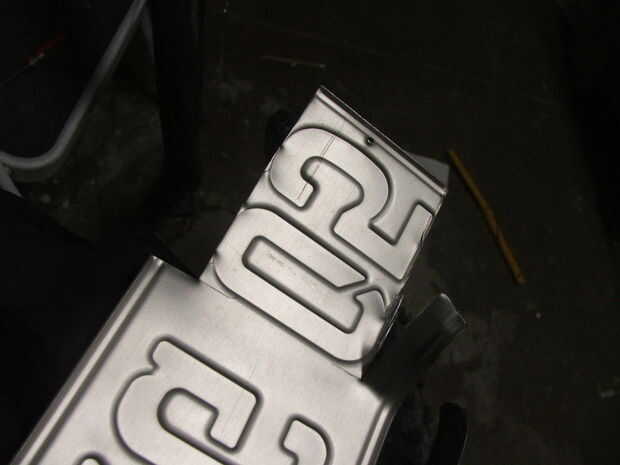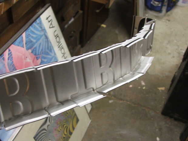 Cada uno de mis segmentos es aproximadamente de 2" de largo y se ha reducido 1" de cada lado, dejando el ancho final del guardabarros 2.5"(originalmente era 4.5" de ancho).