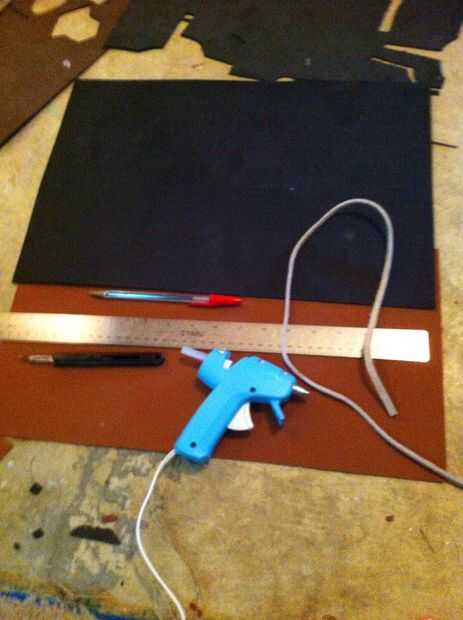 Se necesita un cuchillo del exacto, lápiz, regla, espuma (espuma de artesanía), pistola de pegamento caliente, pegamento caliente palos y correas de cuero. Usted puede cortar el cuero.