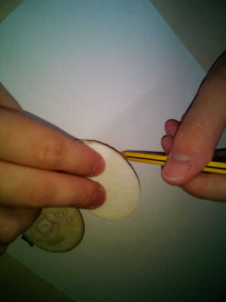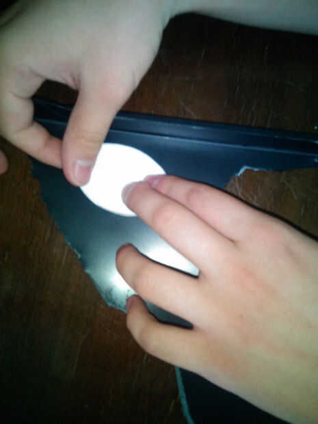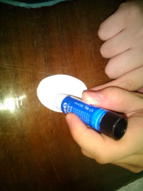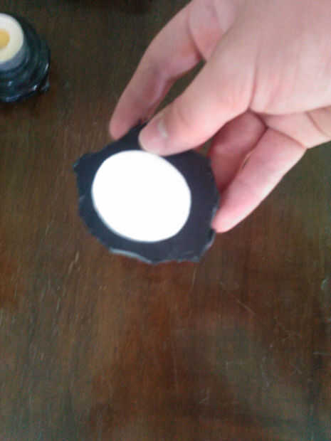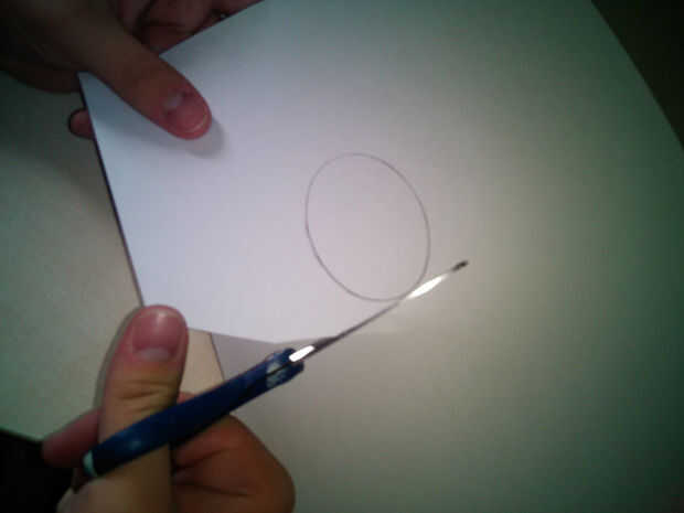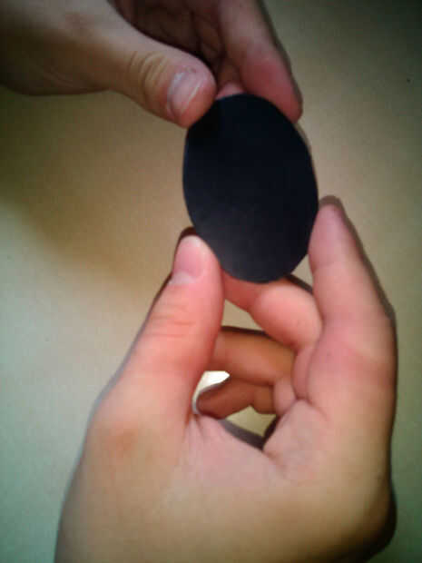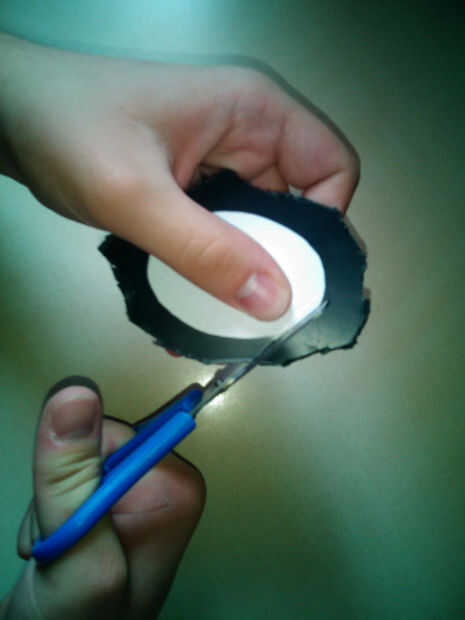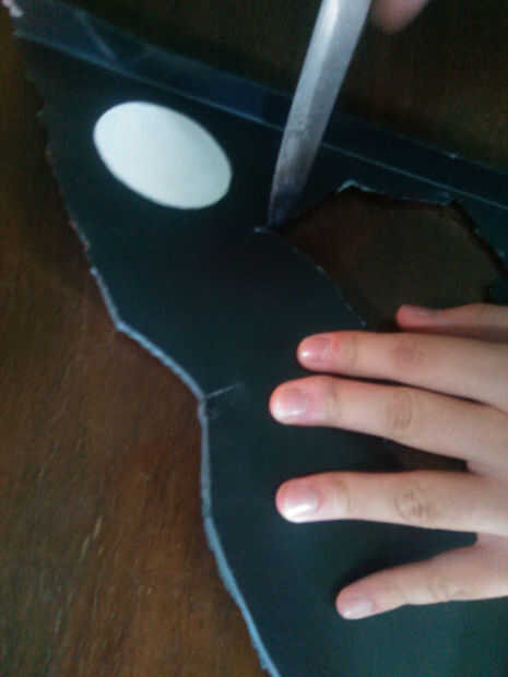 Pegamento 2 óvalos en plástico grueso y corte em hacia fuera (he descubrí que corte el plástico era papilla más fácil cuando se utiliza una lámina climatizada). Luego repasar los bordes con las tijeras para arreglar cualquier signo de torpeza.