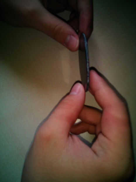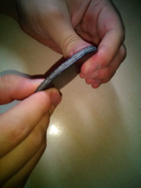 # Cuando corte poner los paneles bajo agua tibia del grifo y remójelos bien para que el papel se despelleja. Asegúrese de que ha marcado los lados internos de cada panel grueso.
