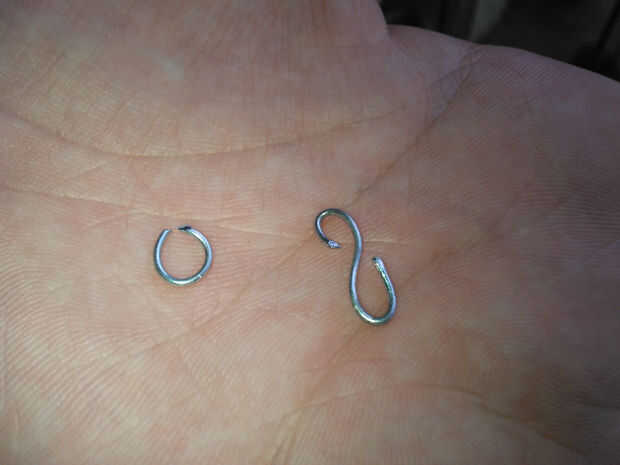 Forma una O y una S alargada gancho de alambre y pintan de aerosol les así (el gancho O será el gancho de seguridad para la cadena y el gancho de S conectan el chaind y el medallón).