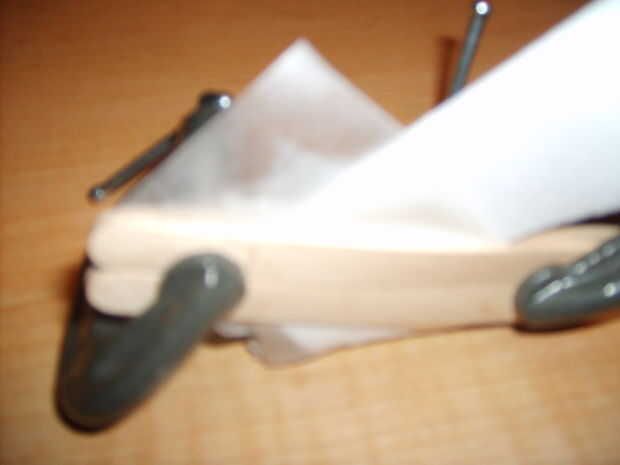 Esta es la forma más exitosa para fijar los bordes de la parte superior y lateral cubre juntas. Tengo papel de cera entre las aletas. el papel de cera que está dentro es mantener el interior se pegue. El papel encerado exterior mantiene el exterior se pegue. Si no utilizas papel de cera, hay una alta probabilidad de que la tapa del eje se pegan totalmente y no poder ampliar al tirar.