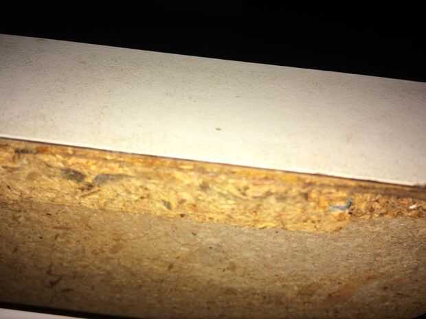 Por razones no nos iremos, esta cubierta no será reemplazada pronto. Sin embargo el aglomerado bajo el Formica está deteriorando justo donde se encuentra la abertura de la lavavajillas. Este daño sólo podría empeorar y crear un gran dolor de cabeza, pero la encimera es de otra manera útil. Aquí le damos una solución rápida y fácil para comprar algo de tiempo.