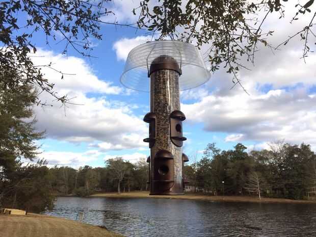Hace años, mi esposo trajo a casa un montón de carretes metálicos utilizadospara almacenar el alambre del MIG. Cosió el paño de alambre en el carrete en algomanera rudimentaria y la llamó un comedero. Un mapache demolidoque, el carrete fue cortado en