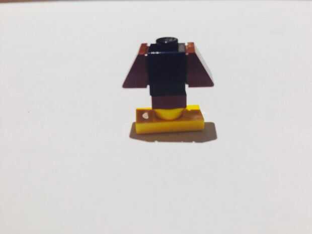 Coloque las alas de Flappy agregando los dos legos rectangulares marrón pequeña a ambos lados del lego multi conectable negro como se muestra arriba.