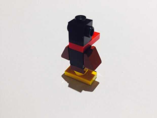 Coloque el lego rojo de 2 x 1 en la parte superior del lego negro y luego añadir el segundo lego multi conectable negro en la parte superior.