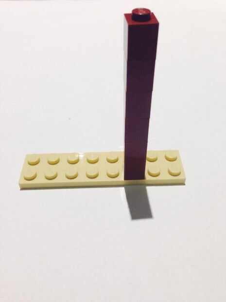 Conecte el seis solo pequeño lego juntos uno encima del otro y luego coloque encima el lego beige.