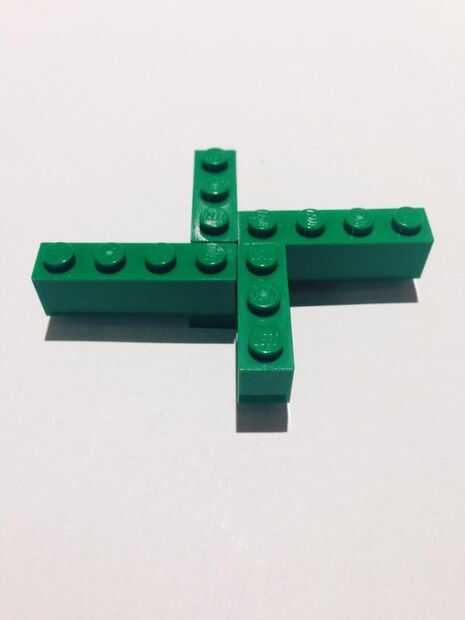 Luego tomar un 3 x 1 lego y conectarlo a una esquina en el lego verde plana 2 x 2. Después de Conecte los cuatro 3 x 1 verde legos legos al igual como se muestra en la primera foto.