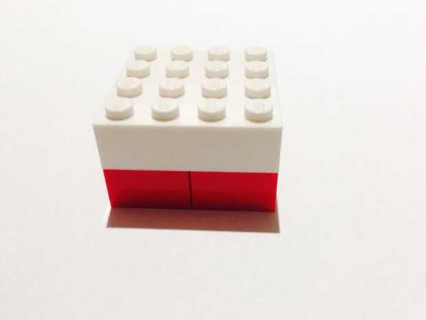 Colocar dos rectángulos rojos al lado entonces añadir dos rectángulos blancos al lado, encima de los rectángulos rojos. Alternar las direcciones.