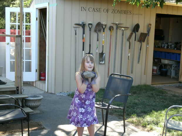 Para emparejar el tema usé Internet para encontrar un antigua guadaña, que creo que es una adición maravillosa. Utilicé tornillos y alambre para fijar la guadaña que también es extremadamente aburrida en el momento.