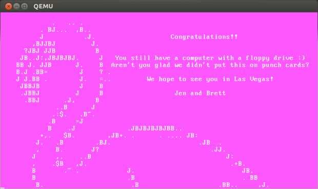 El guión es terriblemente feo, pero esperemos que con lo que has aprendido de estos tutoriales, se puede cambiar a tu gusto. Configurando la variable de atributos al principio del archivo va a cambiar los atributos de texto (si no te gusta el blanco en color de rosa). Además, si editas secret.txt que querrá asegurarse de que cada línea tiene 80 caracteres para que usted define totalmente lo que está en pantalla.